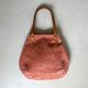 持ち手の革は3.5mm程ある極厚の牛革シュリンクオイルレザー、しかもオイルをたっぷりと含んだ多脂ヌメで、厚みがあるのにとても柔らかく、使い込むほどに味わいが出てきます^^革素材を存分に味わって頂きたいので、裏地は付けずスエード調の床面をそのまま使用しています。