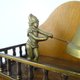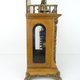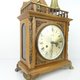 The clock is in excellent working condition and is an 8-day mantel clock that chimes on the full and half hour. It shows some signs of age, as expected for a vintage item, and comes with a key.