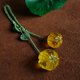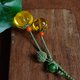 寓意福運綿長、榮華富貴,多子多孫,生活幸福的金光透亮厚墩墩,萌乎乎的金珀福瓜(偶有金絞蜜福瓜),如同掬一捧泉水在陽光下金黃透亮,如水晶剔透,細致繩編南瓜蒂,瓜葉,綠色的掛繩如同瓜蔓。可愛又細致。