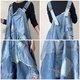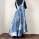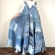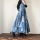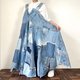 古着デニムを解体して仕立てた、世界に一つだけのジャンパースカート。大胆なフレアシルエットが、まるでドレスのようにドラマチック。特別なお出かけや普段の装いを、ひときわ華やかに彩ります。