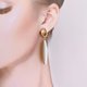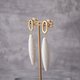 グレーと白のマーブルのような模様が特徴のアクリルパーツに、ゴールドのイヤリングパーツを組み合わせました。落ち着いた色味がお好みの方におすすめ。また、耳元が痛くなりにくいシリコン付きです。
