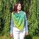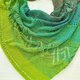 - Hand knitted lace crescent-shaped shawl of cotton multicolor. Gradient cotton shawl. Beautiful shawl with lace pattern is very feminine and elegant. The knitted fabric is flexible and stretchy. A multi-colored gradient makes it easy to combine it with other clothes. The delicate shine of the canvas illuminates the skin, making it smooth and radiant.