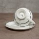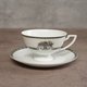 杯組由德國König Tettau於1968年製造,帶有漂亮盆花圖騰以及邊緣的幾何花朵設計,此款杯組的瓷胎很薄,使用指甲輕敲的聲音非常清脆好聽,推測應為骨瓷材質製成。