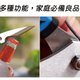* 可用於廚房和食品料理。 * 刀刃上的鋸齒邊可以牢固地夾住物體,防止滑動。 * 邊緣上的巨大凹口可以牢固地保持物體,防止滑落。 * 刀片上的切口可以當作開瓶器使用。 * 刀片上的小孔可剪斷1mm之釣魚/鋼絲線。 * 可分離刀片,方便清潔。
